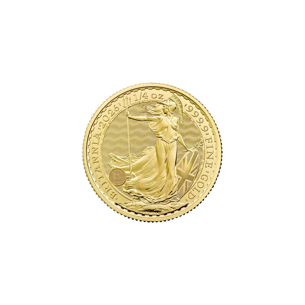 Od roku 1987 symbolizuje zlatá minca Britannia silu a stabilitu Veľkej Británie. V emisii Britannia 1/4 oz 2026 sa spájajú stáročia staré symboly s najmodernejšou technológiou. Detailné vyobrazenie Británie ako ochrancu zeme a morí v kombinácii s inovatívnymi ochrannými prvkami robia z tejto mince vyhľadávaný zberateľský artikel. Britannia zároveň zostáva verná svojej funkcii bezpečného uchovávania hodnoty, vďaka čomu je už desaťročia jednou z najobľúbenejších investičných mincí na svete.