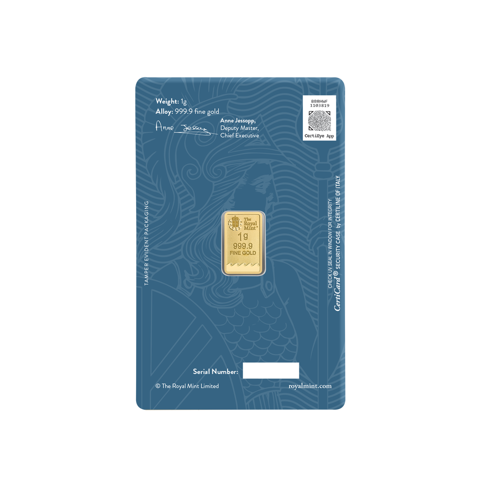 Táto zlatá tehlička obsahuje 1g 999,9 rýdzeho zlata a je nezameniteľným stelesnením britskej hrdosti a odvahy.