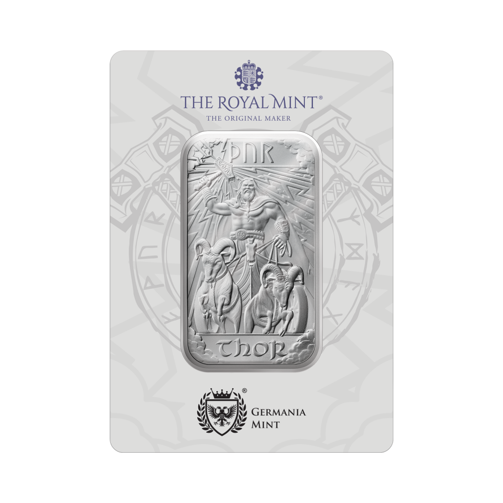 Druhá minca vytvorená v spolupráci s Kráľovskou mincovňou v rámci série Norse Gods, strieborná zliatok Norse Gods - Thor s hmotnosťou 1 oz, kombinuje jedinečný dizajn Kráľovskej mincovne vyrazený v striebre najvyššej kvality a uložený v elegantnom balení mincovne Germania. Je vynikajúcou voľbou pre zberateľov a milovníkov mincového umenia.