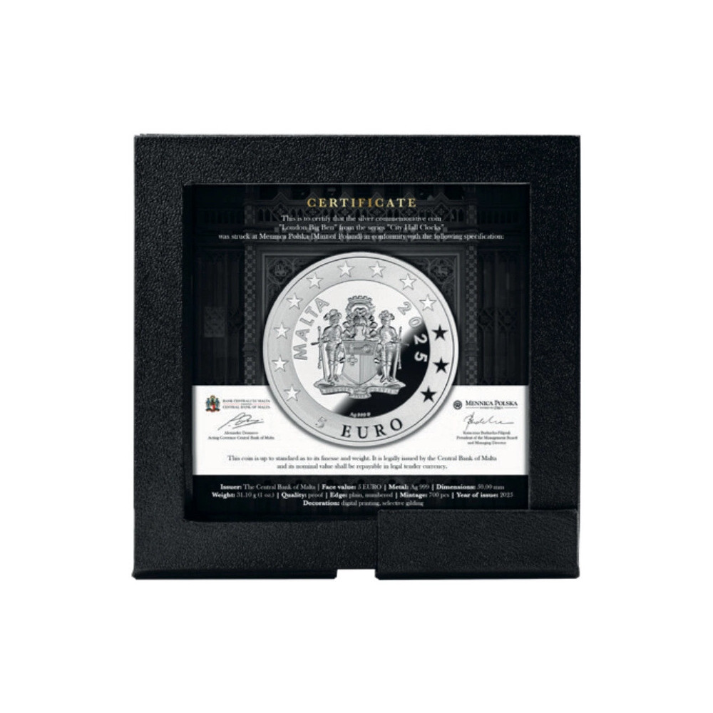 Táto exkluzívna strieborná minca s nominálnou hodnotou 1 unca je druhou emisiou zo série "Radničné hodiny" a tiká v rytme Londýna. Big Ben. Sublime. Neochvejný. Prerezáva hmlistý vzduch nad Temžou. Každú štvrťhodinu sa rozozvučí "Westminster Quarters". Oči sa zdvihnú, keď sa kroky odrážajú od dlažby. Vdýchni chladný vzduch. Srdce uchvátené zvukovou vlnou. Stále natiahnuté ruky. Neúprosný preživší besnenia druhej svetovej vojny. Dôkaz vytrvalosti odliaty v Dôkaze dokonalosti. Minca je zapečatená v puzdre s certifikátom pravosti. Na svete je iba 700 kusov.