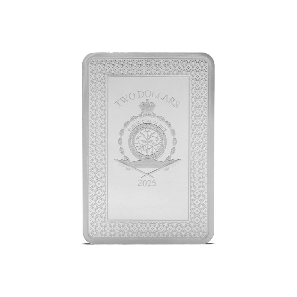 Na zadnej strane mince je oficiálna pečať Niue, krajiny, ktorá mincu vydala, ako aj informácie o nominálnej hodnote „TWO DOLLARS“ a roku vydania „2025“.