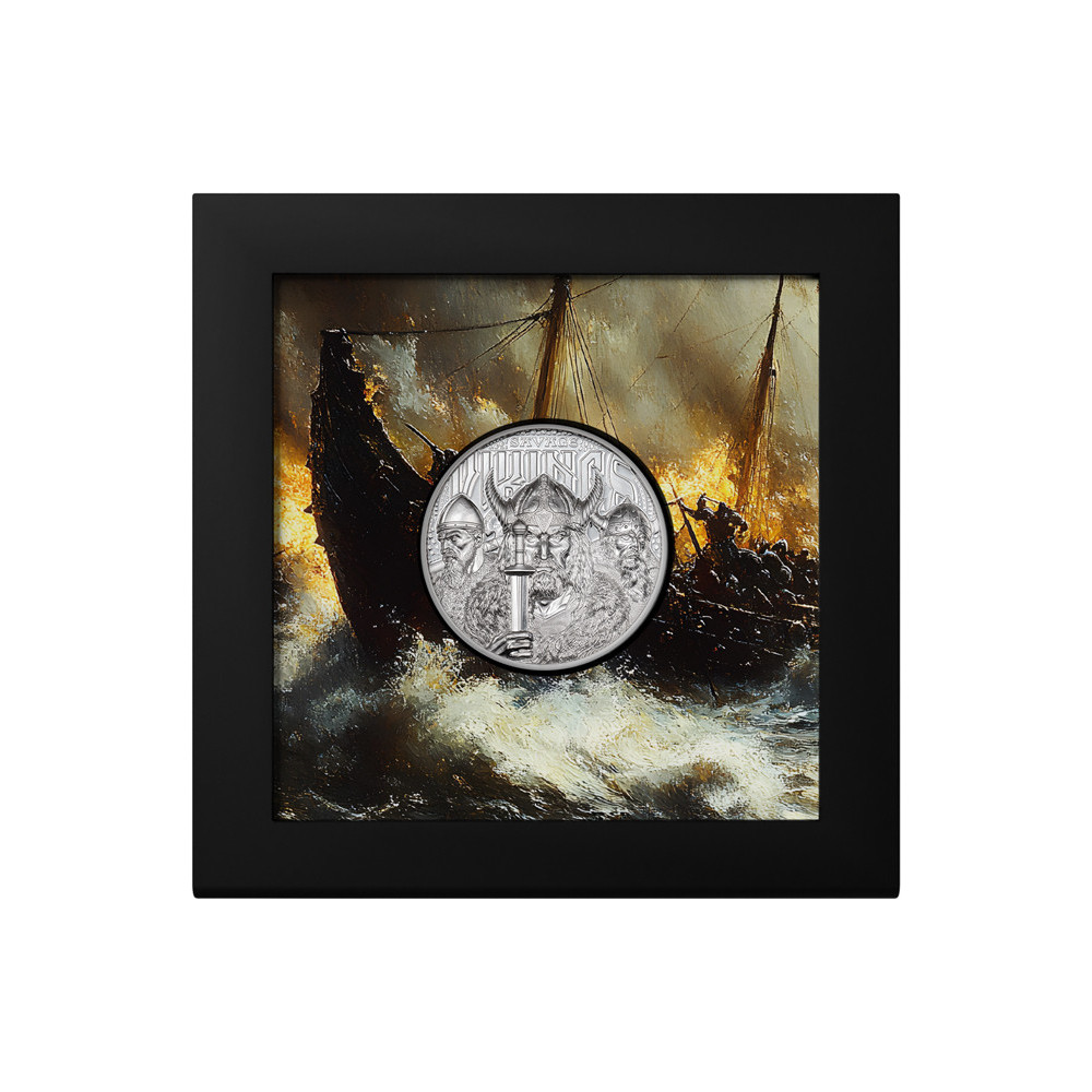 Táto pôsobivá 1uncová strieborná minca vzdáva hold legendárnym Vikingom Ragnarovi Lodbrokovi, Ivarovi Bezkostnému a Björnovi Ironsideovi. Je vyhotovená vo vysokom reliéfe so selektívnym pozlátením a zachytáva silu, odvahu a mýtický odkaz severských bojovníkov. Toto majstrovské dielo sa dodáva v elegantnej škatuľke s certifikátom pravosti a je celosvetovo limitované len na 999 kusov.