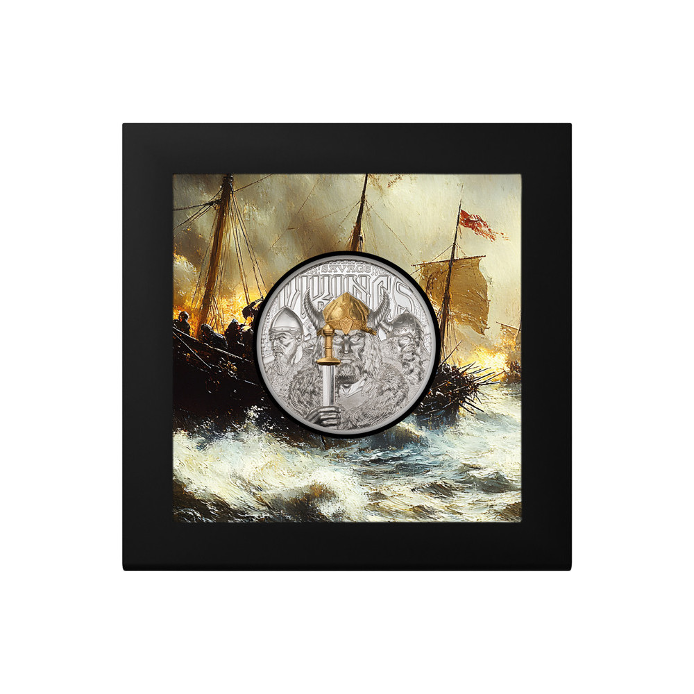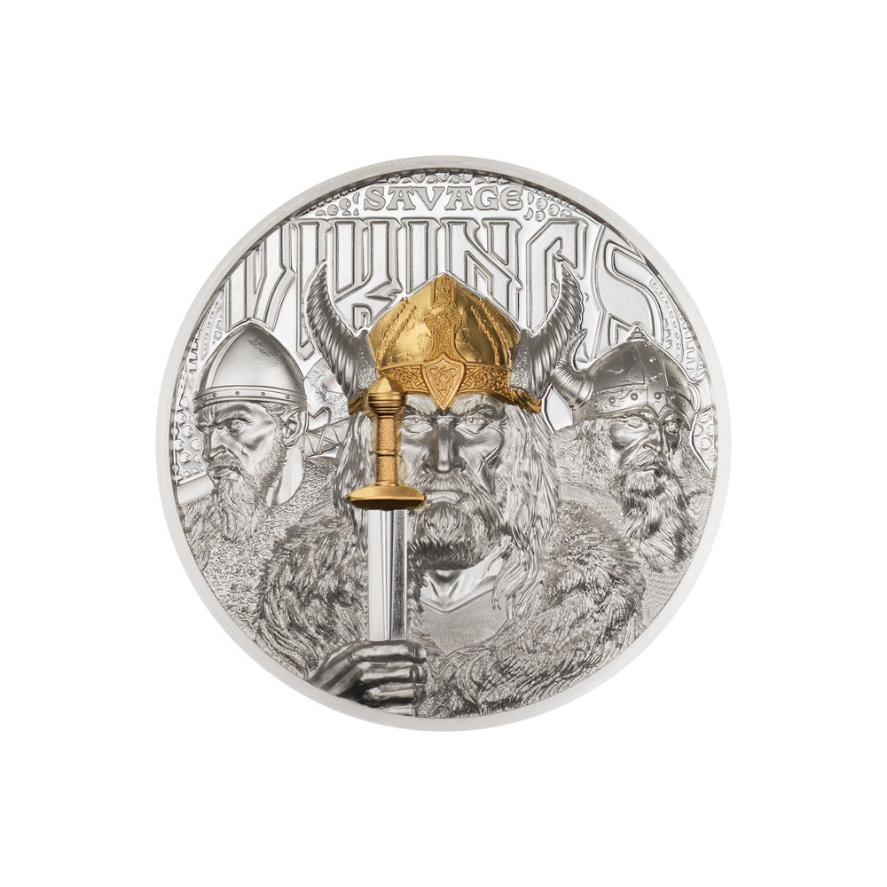 Táto pôsobivá 3-uncová strieborná minca vzdáva hold legendárnym Vikingom Ragnarovi Lodbrokovi, Ivarovi Bonelessovi a Björnovi Ironsideovi. Je vyhotovená vo vysokom reliéfe so selektívnym pozlátením a zachytáva silu, odvahu a mýtický odkaz severských bojovníkov. Toto majstrovské dielo sa dodáva v elegantnej škatuľke s certifikátom pravosti a je limitované len na 500 kusov na celom svete.
