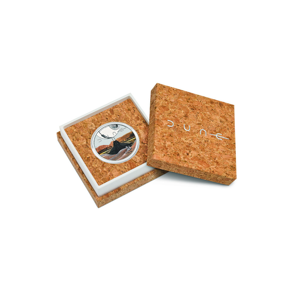 Minca je vyrazená z 99,99 % čistého striebra, váži 1 oz (31,107 g) a má priemer 40,90 mm. Emisia z roku 2026 má nominálnu hodnotu 1 TVD a jej maximálny náklad je obmedzený na 3 000 kusov. Minca sa dodáva s očíslovaným certifikátom pravosti a je uložená v korkovom puzdre s certifikátom FSC s logom Dune a tematickým vonkajším obalom. Ide o ponuku pre zberateľov a fanúšikov tohto univerza.