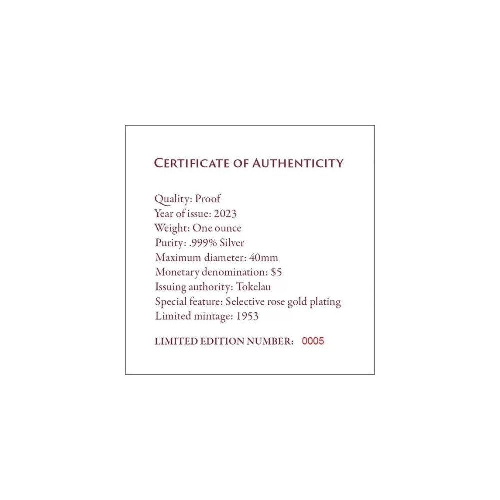 V deň veľkého sprievodu a starodávneho rituálu bola Alžbeta II. korunovaná za kráľovnú 2. júna 1953 vo Westminsterskom opátstve v Londýne. V roku 2023 to bude 70 rokov od tejto historickej udalosti a túto príležitosť si pripomíname mincou, ktorá určite upúta pozornosť kráľovských aj numizmatických zberateľov! Majestátna syntéza 1oz čistého 99.9% striebra a selektívneho pokovovania ružovým zlatom vytvára pôsobivú, ale cenovo dostupnú mincu!
